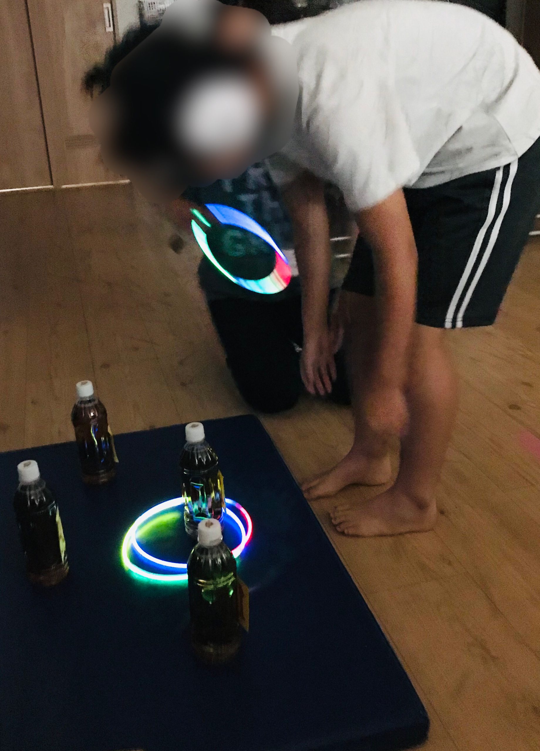 今年の催し物は、【ヨーヨー釣り】・【光る輪投げ】・【おやつ釣り】・【かき氷】でした☆