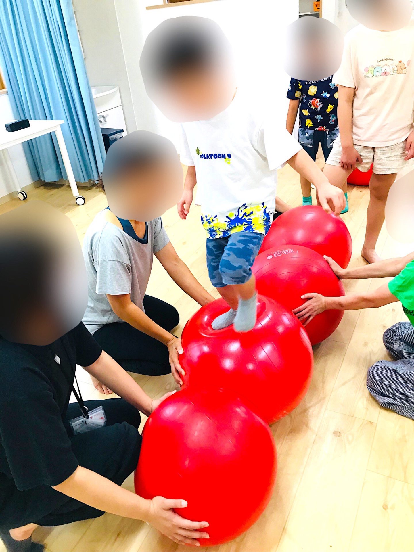 不安定な座面で姿勢を保ったり、動かしたりと様々な姿勢でバランスを取ることで、