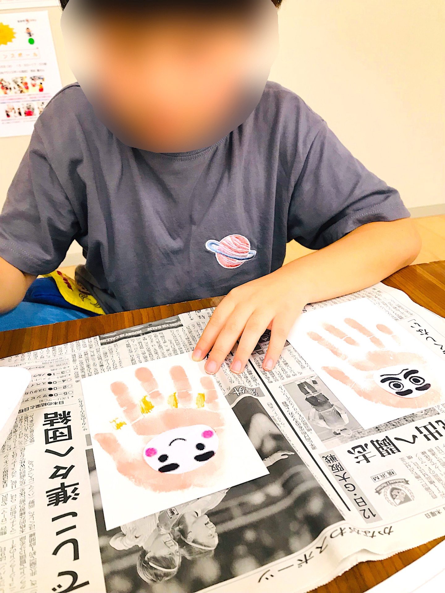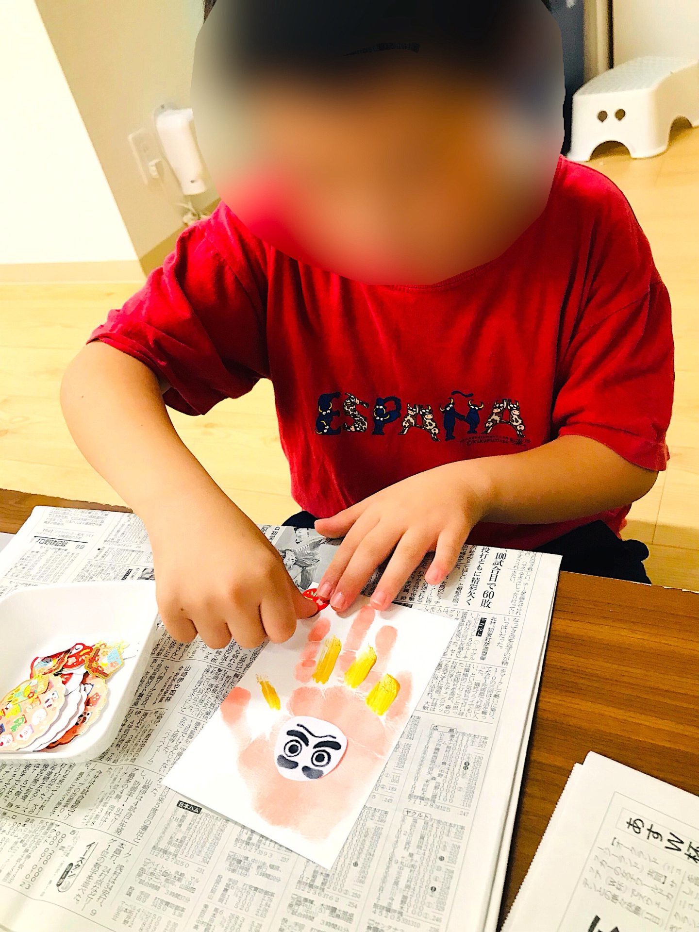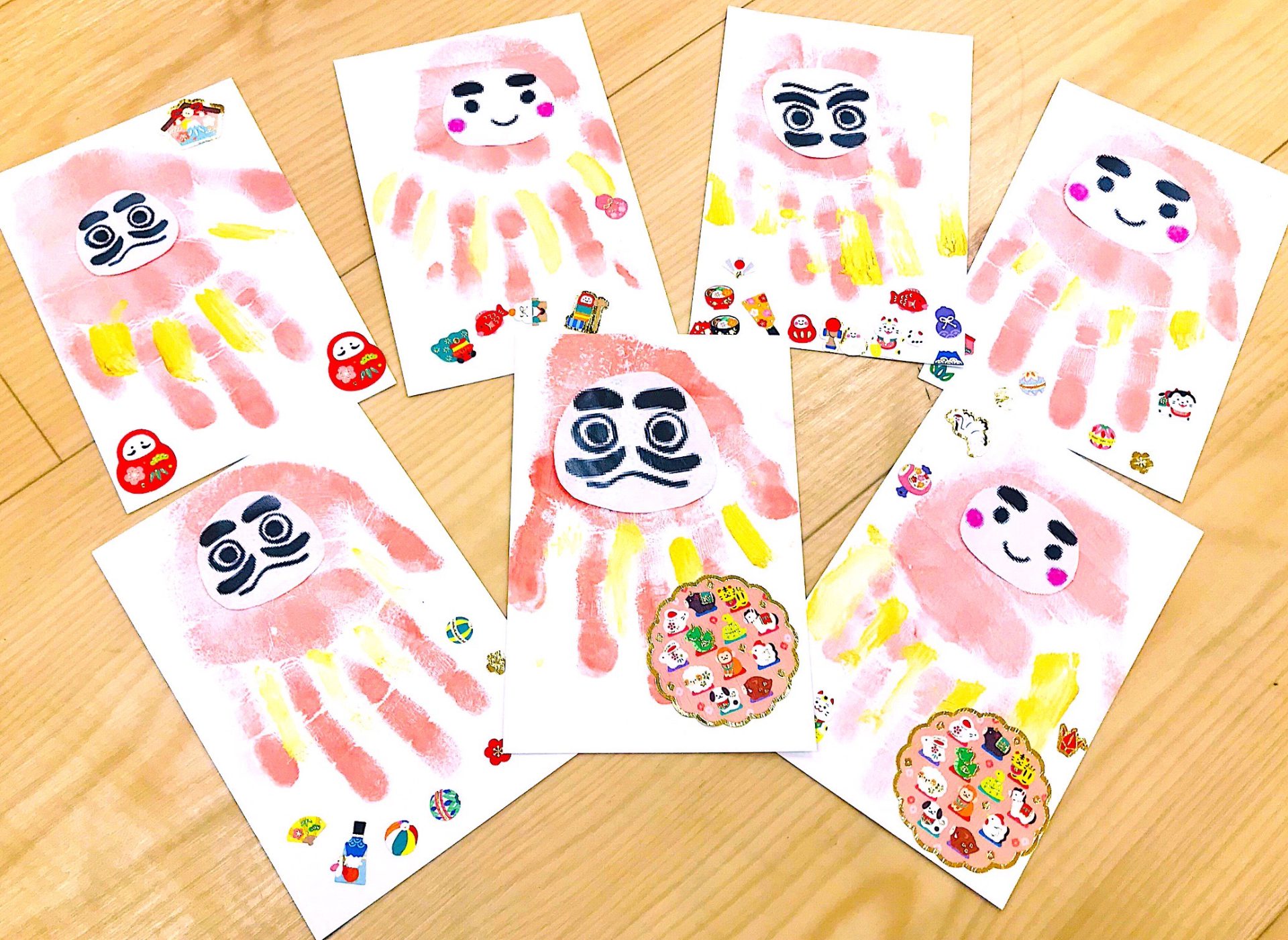 今年の年賀状は手形を使って、「だるま」モチーフの年賀状作りに
