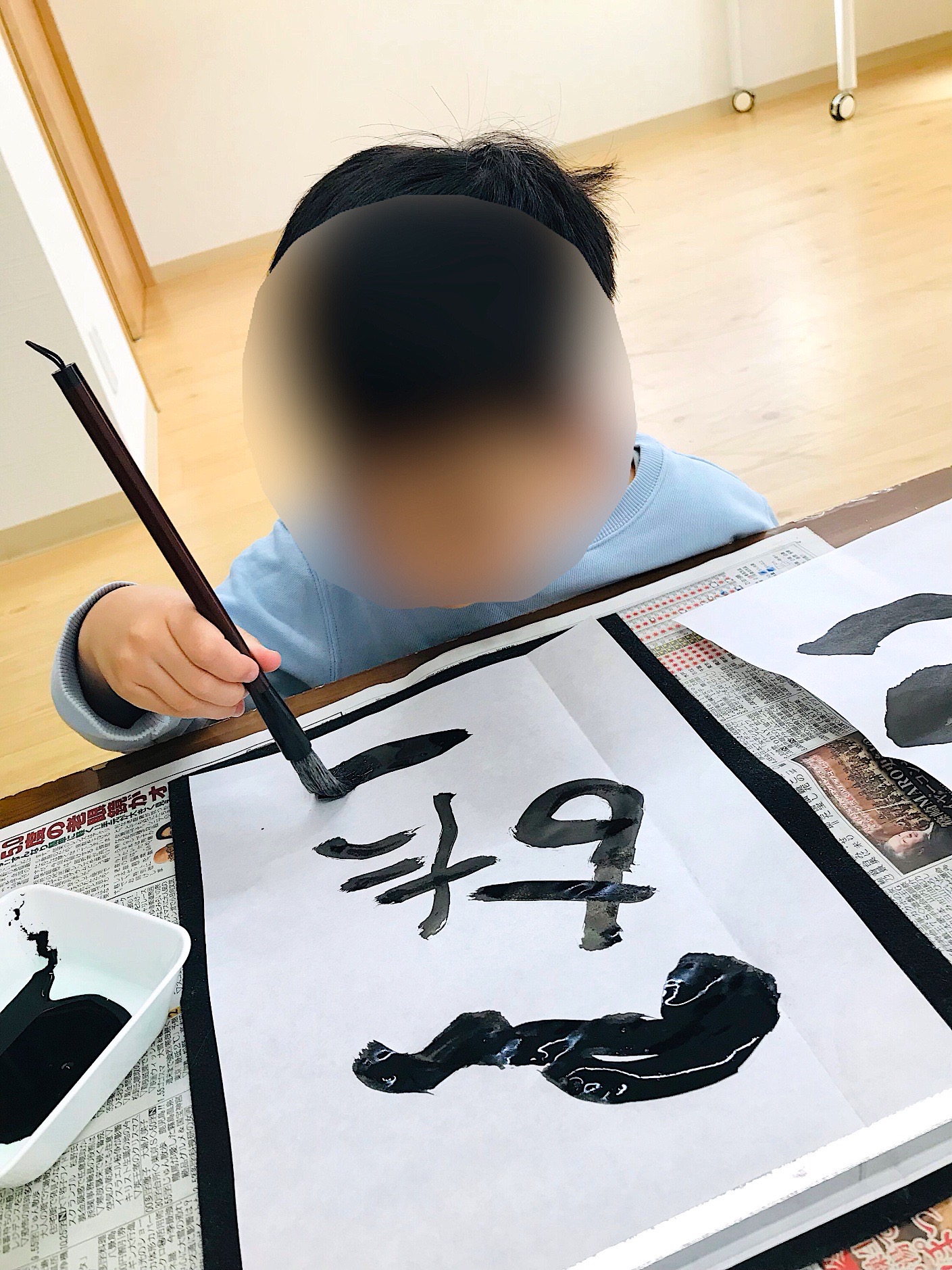 書き初めでは、練習の時から一筆一筆しっかり集中しながら