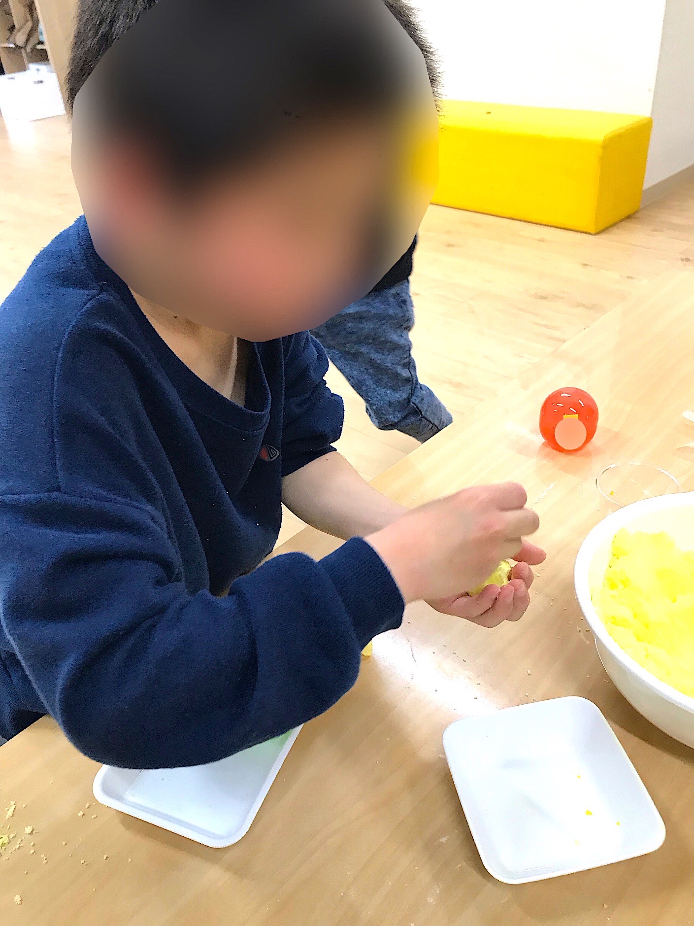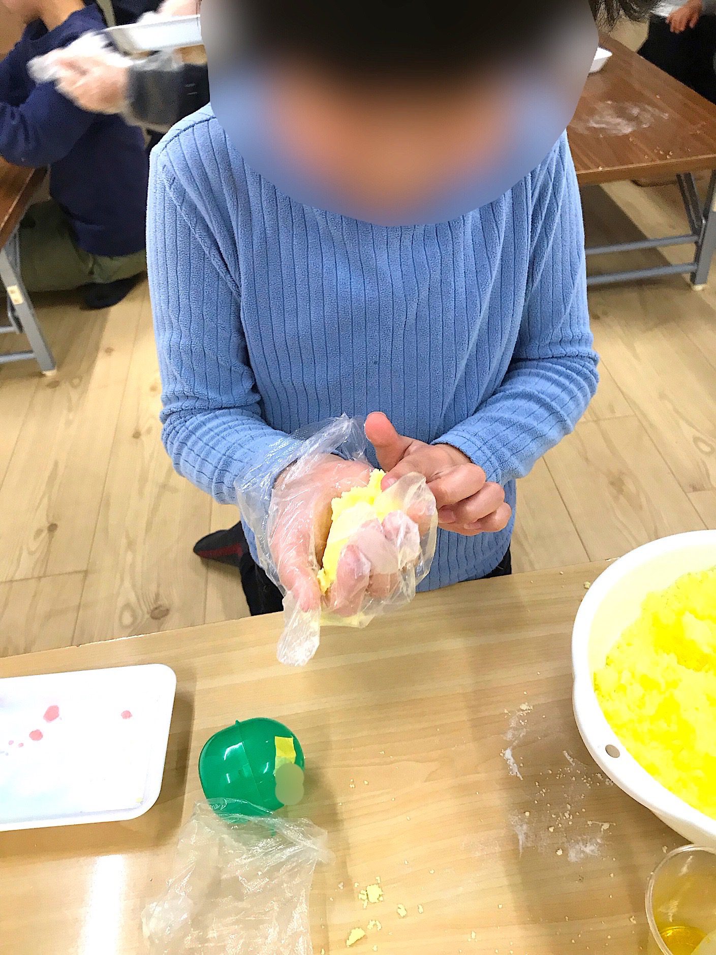 マーブル色のバスボムを作る子や、