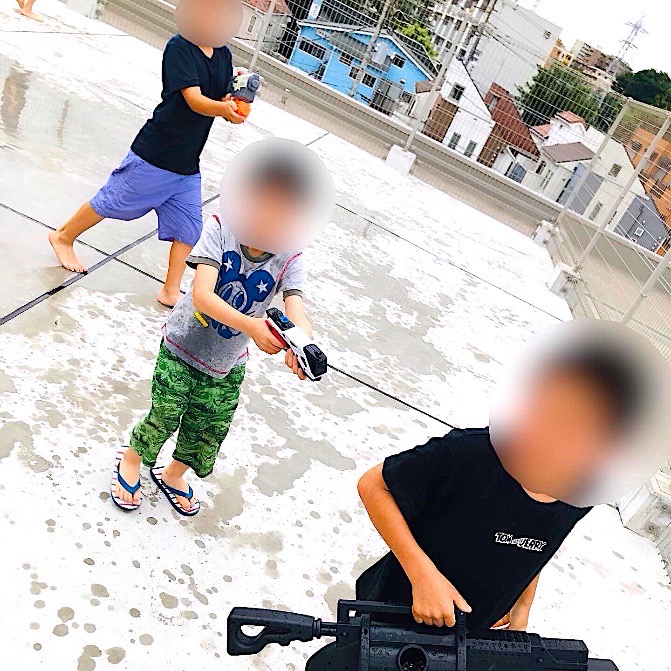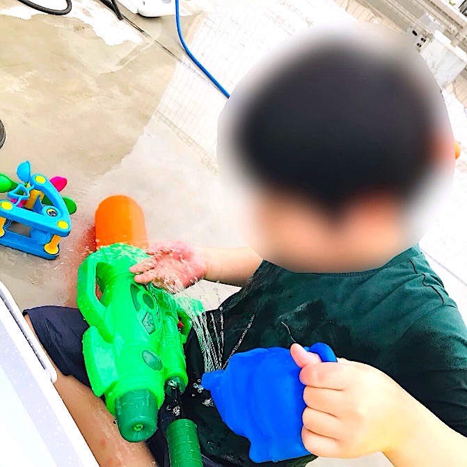 大はしゃぎで水鉄砲を楽しみました♪