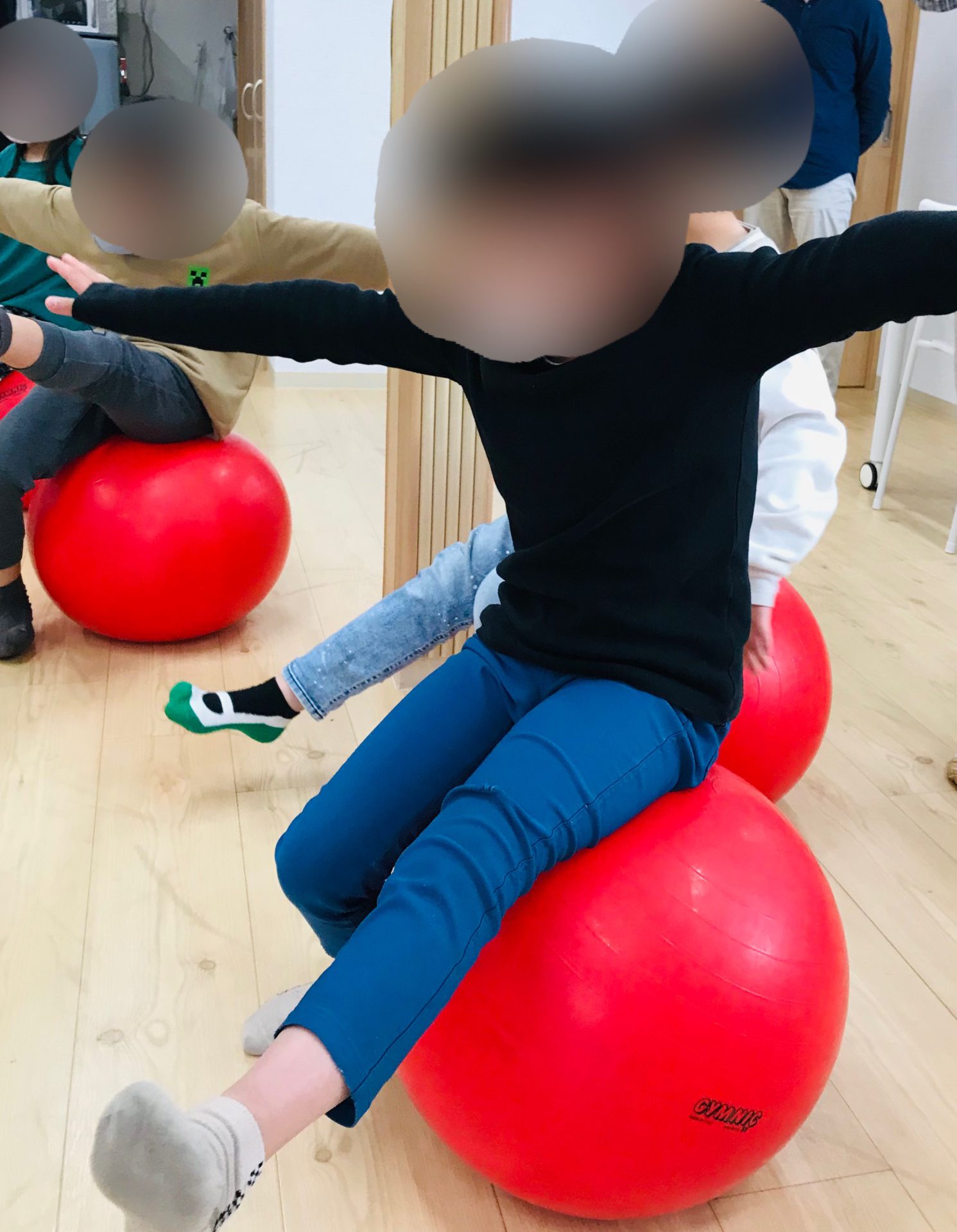 最後にバランスボールに乗りながら鬼ごっこやダンスを楽しみ、