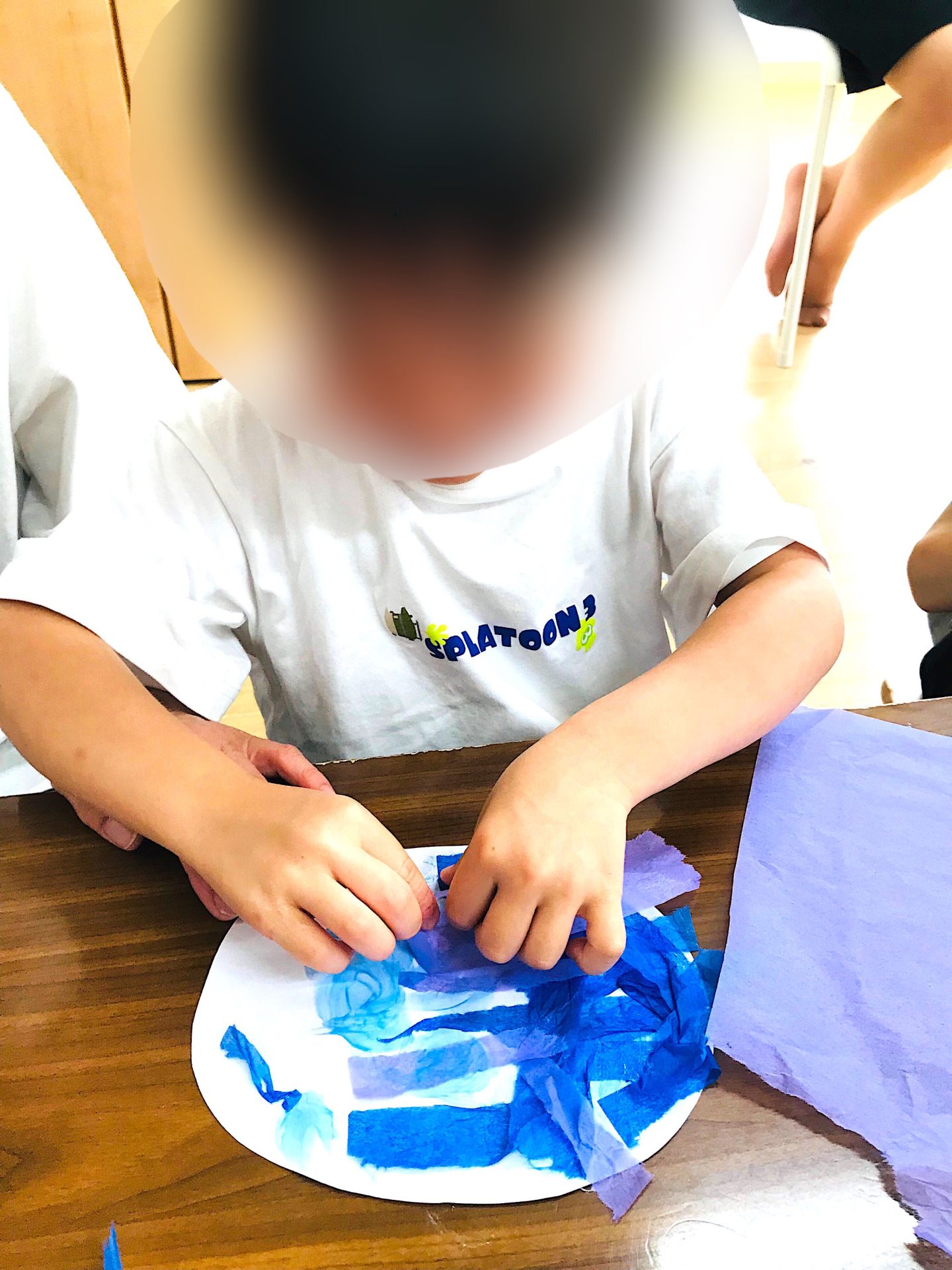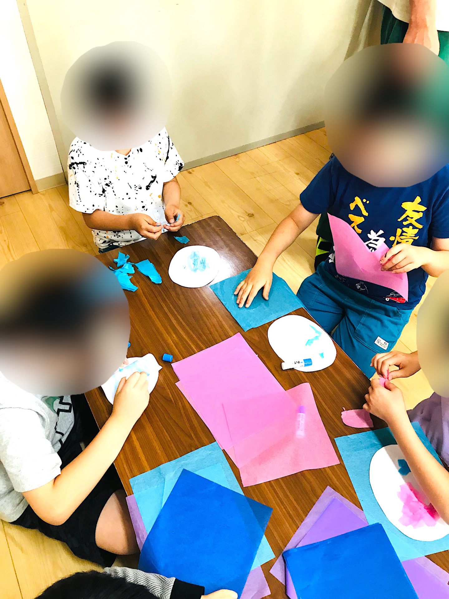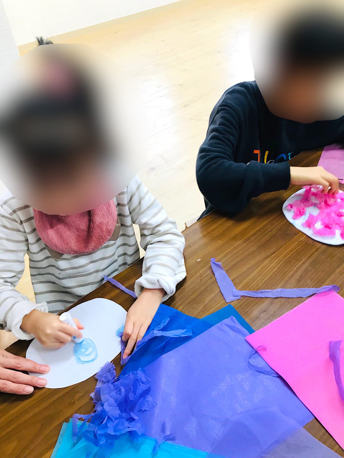 花紙をちぎったり、ひねったりと指先に集中し、微細運動をプラスしながら行いましたよ~!!