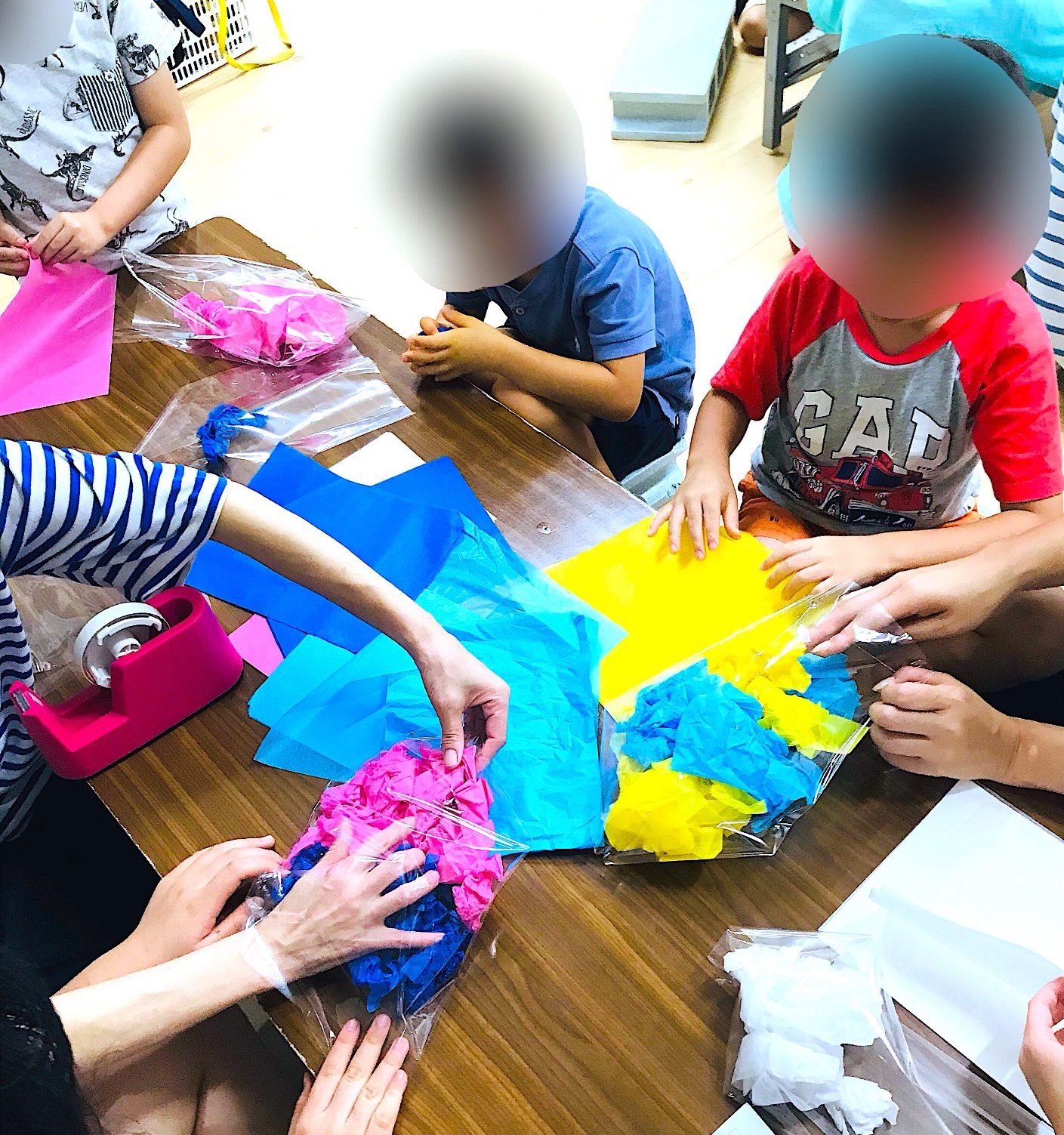 ①袋詰め(袋の中にお花紙を入れていく)