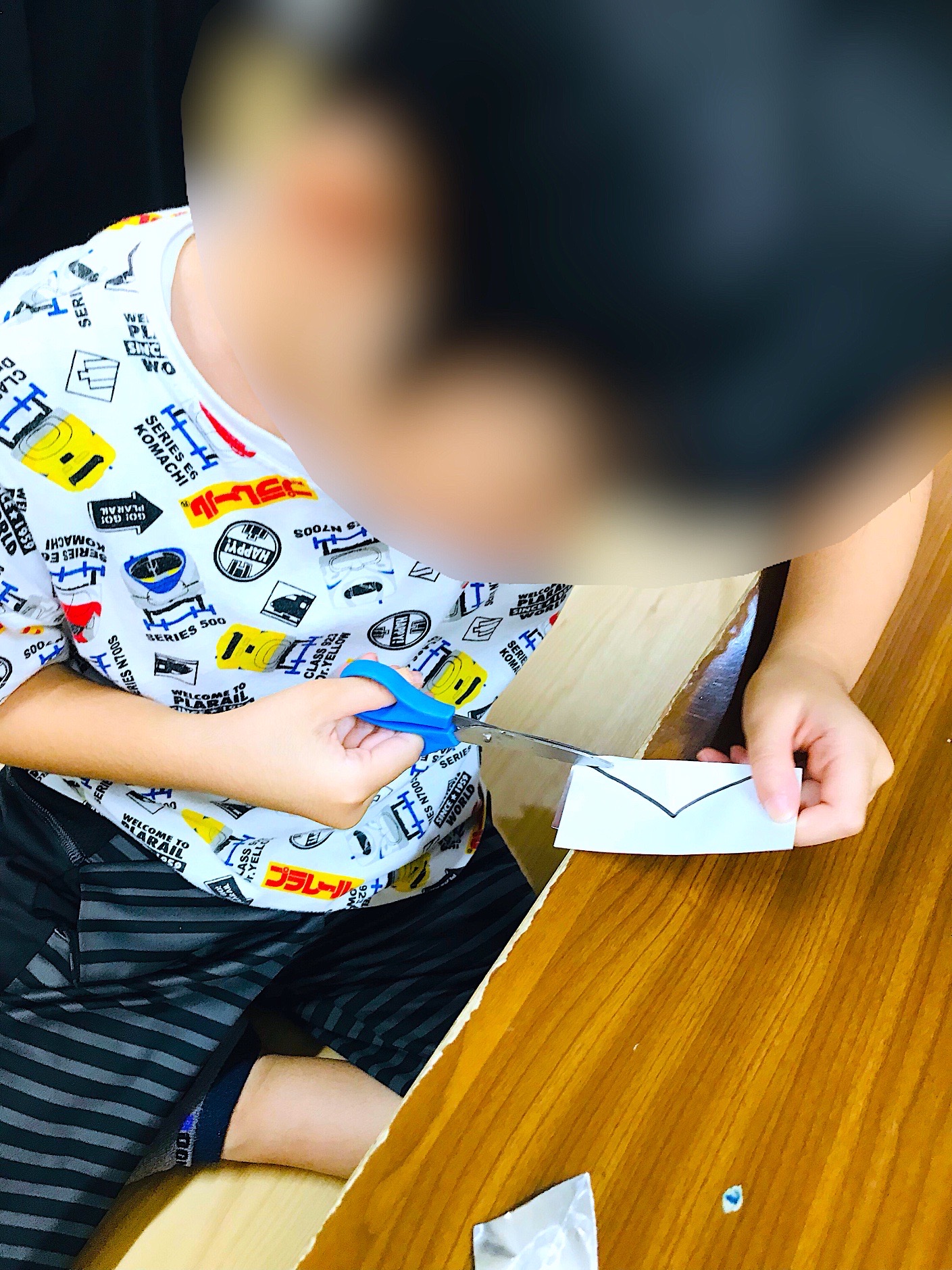 ②ハサミトレーニング(ガイドにそって切ると「こうもり」の形になる)