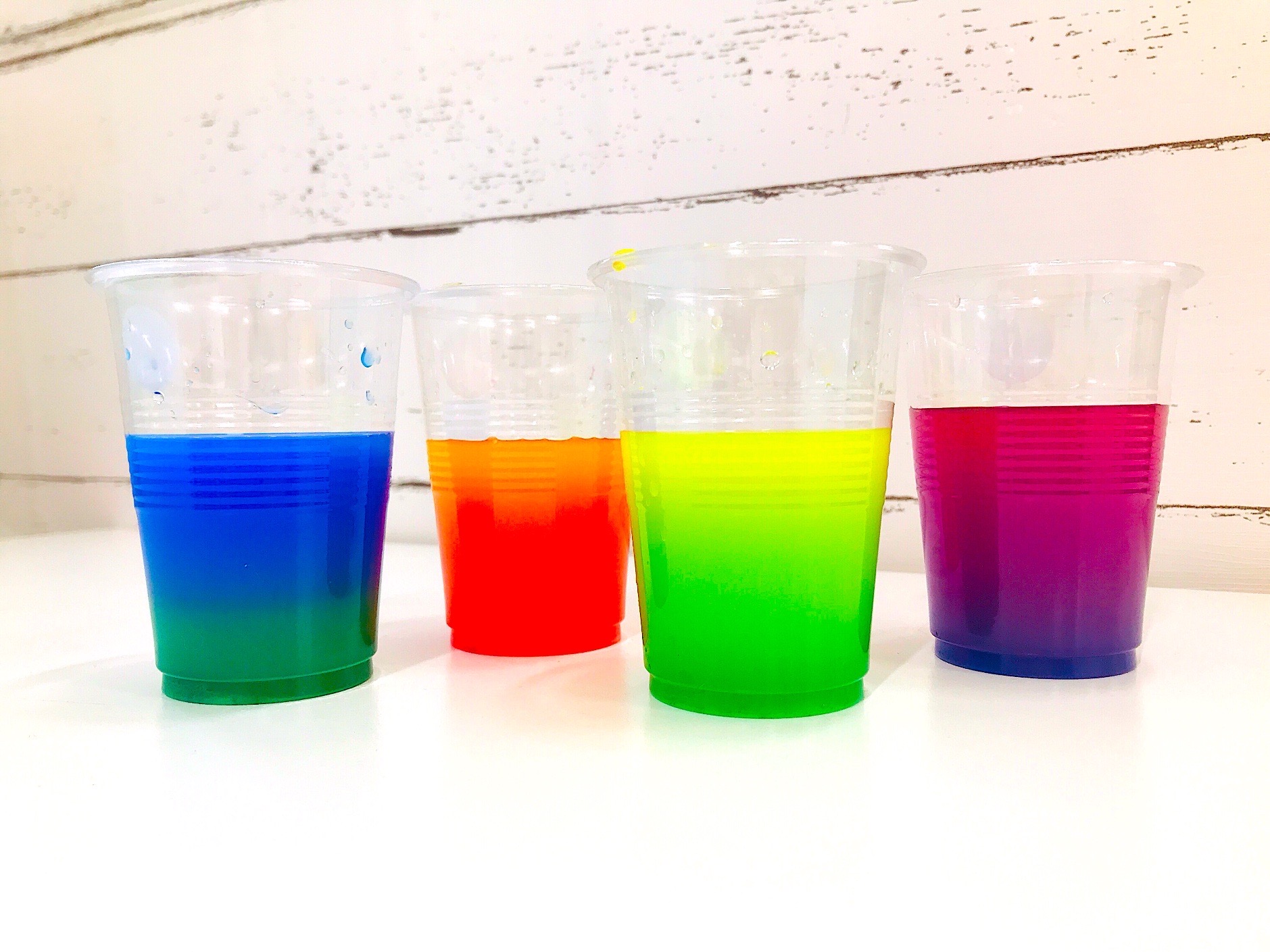 色水が二層になるように